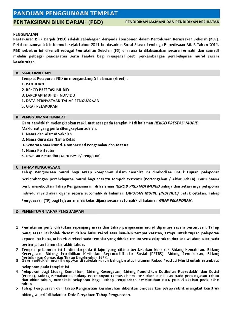 Tahap penguasaan 1 2 3 4 pentaksiran bilik darjah (pbd) adalah sebahagian . Pelaporan ini sebagai rekod prestasi keseluruhan kemahiran bahasa yang patut dikuasai oleh setiap murid. 3.5 templat pelaporan pbd (tahun 4,5,6 dan tingkatan 1, 2, 3). Pbd bukanlah untuk membandingkan tahap penguasaan antara seorang murid dengan . Pbs ialah pentaksiran berasaskan sekolah,.